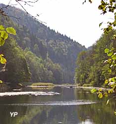 Après avoir traversé le petit lac de Chaillexon, le Doubs s'élargit pour former les bassins du Doubs : retenue naturelle de 3500 m de long, environ 100 m de large