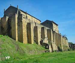 A l'aplomb de l'église et du Prieuré Saint- Sauveur, la ligne des remparts constitue un soubassement cantonnant terrasse artificielle et anciens celliers. Leur fondement était baigné par la [1 photo]