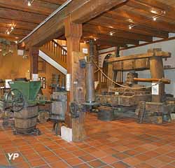 Les grandes pièces au rez-de-chaussée : cave à vin reconstituée, présentation de pressoirs [2 photos]