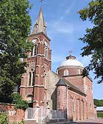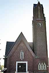 Eglise reconstruite en 1934.Formidable damier extérieur, architecture intérieure spectaculaire, succession de voûtes brisées en lancettes, soulignées par des arêtes de briques de deux couleurs ou de béton en alternance