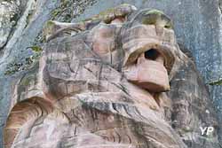 Scultpture élevée par Auguste Bartholdi à la mémoire des victimes du siège de 1870/1871. Le lion gigantesque achevé en 1880 mesure 20m de long sur 11m de haut.