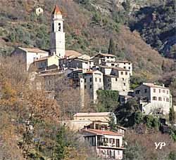 Cette église du XVe s., ravagée par un incendie, fut, comme beaucoup d'autres dans le Comté de Nice, "baroquisée" au XVIIIe s. On remarquera à l'extérieur son clocher