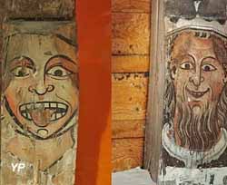 Magnifiques peintures murales du XIVe s. sur la voûte de l'abside du choeur et du XVIIe s. sur les murs. Vierge à l'enfant du XIIIe s. en pierre