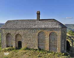 Construite à la fin du XIème siècle, cette chapelle romane à nef unique et dominée par un clocher à peigne, ou clocher-mur, était un prieuré régulier dépendant de Bredons [1 photo]