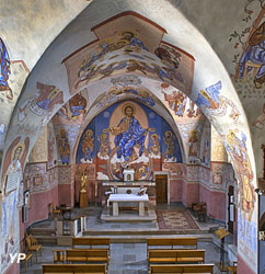 Eglise préromane construite avant l'an 1000, à chevet plat et angles arrondis. Peintures murales