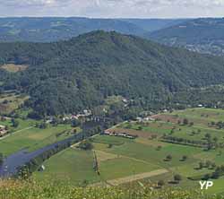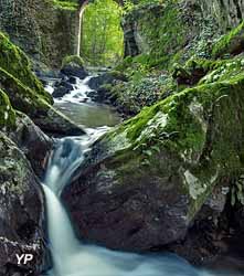 A 15 km, au nord-ouest d'Argentat-sur-Dordogne). Elles sont formées par 3 chutes d'eau successives dans les gorges escarpées et boisées de la Franche-Valeine qui