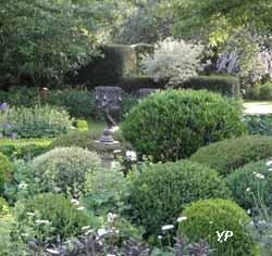 Site inscrit labellisé "Jardin remarquable". Situé au bord de la Vézère, le jardin de buis et d'ifs taillés en topiaire abrite de très beaux spécimens de gingko biloba, catalpas