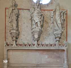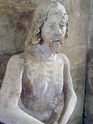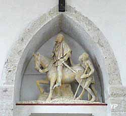 Deux travées conservées de l'ancien édifice (XIVe-XVIIe) Statue équestre "La Charité de Saint Martin" (début XVIe) Marques de compagnonnage datant de la reconstruction d'une partie de la [2 photos]