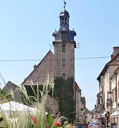 Une puissante tour carrée surmontée d'une toiture pyramidale couronnée d'un clocheton, seul reste de la forteresse primitive bâtie vers 1250, domine de sa haute silhouette le bâtiment d [3 photos]