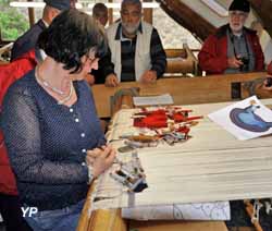 Démonstration et cours de teinture végétale, filage, tricot et tissage.