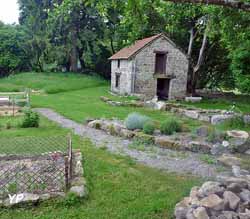 Un lavoir en pierre entouré de noisetiers et d'arbres centenaires.