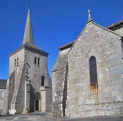 L'église du XIIe siècle, massive et frustre, est gardée par des lions de granit. Elle a la particularité d'avoir le clocher séparé de sa nef, suite à l [3 photos]