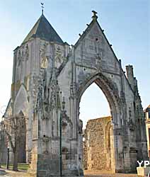 Église gothique dont l'édification commence à partir de 1374 mais est interrompue par la guerre.