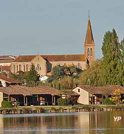 Eglise implantée sur la place du village au pied de la tour de guet du XIIe siècle, devant la cour de l'ancien château du XIXe siècle. Monument de la [2 photos]