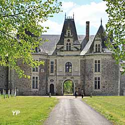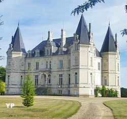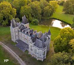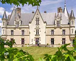 Château XIXe s. néo-gothique et manoir XVe transformé en communs.Parc à l'Anglaise dessiné par le comte de Chouzot
