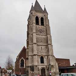 Église de style flamboyant en pierre calcaire sur plan cruciforme ; le chœur ainsi que la nef sont, à l'origine, flanqués de deux chapelles. la tour carrée qui s'élève