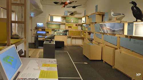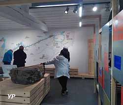 Sur le premier demi-palier se développe l'exposition permanente qui présente, au travers d'éléments interactifs ou ludiques, géologie, faune, flore, histoire...
