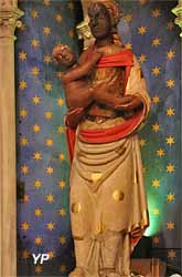 Statue vêtue et couronnée de la Vierge Noire du XVIe siècle dans une basilique du XIXe siècle.
