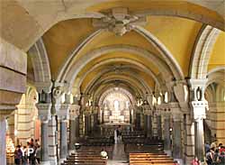 La basilique compte 4 tours de 48.5 mètres, qui symbolisent la Justice et la Force (Ouest), la Prudence et la Tempérance (Est). Qu’on entre par la crypte consacrée à Saint Joseph ou par les portes supérieures, on reste étonné par l’abondance de la décoration et par la rutilance des couleurs, bien mises en valeur par la simplicité du plan basilical. Une large place est faite à la sculpture et à la mosaïque, ainsi qu’aux verrières.