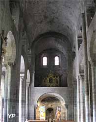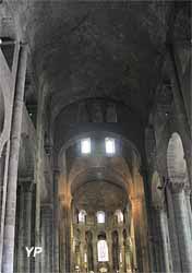 A l'intérieur, la nef constituée de 4 travées est vaste. Elle se termine par une abside où l'on ne dénombre pas moins de 64 chapiteaux dont un seul est historié et évoque la Jérusalem céleste.