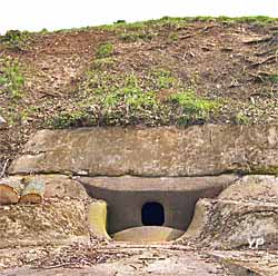 la toiture composée de quatre plaques ( voussoirs ) de 15à 25cm d'épaisseur ils sont recouverts d'une couche de béton et d'une hauteur de 3 mètre de terre.