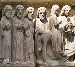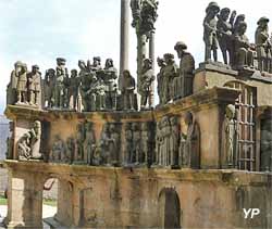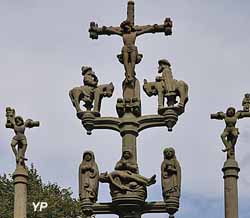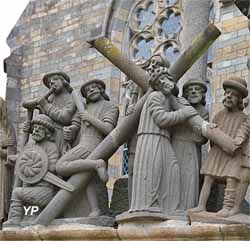 ![]() Calvaire de Plougastel (doc. Yalta Production) | ![]() Croix vautive - le Christ au dessus de la Pietà, sur les côtés, les Cavaliers, en dessous, Marie et Marie-Madeleine (doc. Yalta Production) |