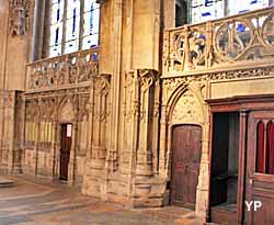 Enfin, la cathédrale possède un trésor qui, après la dispersion de 1562 et les confiscations de la Révolution, a été reconstitué au XIXe s. Il contient des objets liturgiques du XIIe au XIXe s., des tableaux et des tapisseries d'Aubusson.