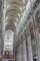 La cathédrale est édifiée au XIIe siècle mais est reconstruite pour l’essentiel entre 1220 et 1270, après celles de Chartres et Reims. Son chevet est un modèle copié jusqu’à la fin du Moyen Âge.