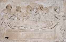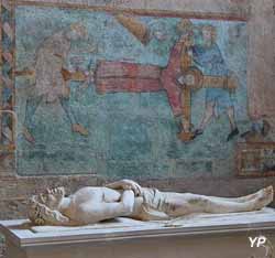 ![]() Bas-relief de la Résurrection de Lazare (pierre polychrome, XVIe s.) (doc. Yalta Production) | ![]() Christ au tombeau (Claus de Werve, vers 1420) et fresque de la Crucifixion de saint André (XIVe s.) (doc. Yalta Production) |