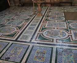 ![]() Carrelage de la chapelle Sainte-Croix (doc. Yalta Production) | ![]() Retable de la Passion et statue de sainte Reine (XVIe s.) (doc. Yalta Production) |