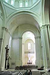 La vaste nef est couverte de trois coupoles byzantines caractéristiques de l'architecture romane du sud-ouest de la France.