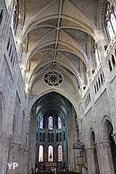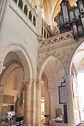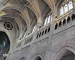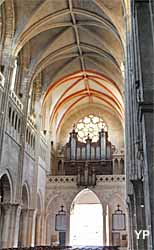 A l’intérieur de la cathédrale, vous pourrez découvrir une belle tapisserie de Bruxelles datant de 1510, un vitrail du XVIème siècle ou encore quelques rares statues, et également des chapiteaux romans. Parmi les scènes figurent les Pèlerins d’Emmaüs et l’Apparition du Christ à Marie Madeleine.