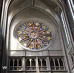 Louis XIV régnait alors sur la France. Pour lui rendre hommage, un soleil à son effigie fut d'ailleurs ajouté aux rosaces du transept, accompagné de sa devise "Nec pluribus impar" (au-dessus de tous). À partir de 1702, l'architecte Jacques V Gabriel confia au sculpteur Jules Degoullons la réalisation des stalles et lambris du chœur. L'inauguration officielle du portail de la cathédrale eut lieu le 8 mai 1829, à l'occasion du quatrième centenaire de la délivrance d'Orléans par Jeanne d'Arc.