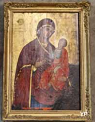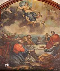 ![]() Chapelle de la Garoupe - sainte Hélène avec la croix et, à ses pieds, saint Armentaire (premier évêque d'Antibes) et saint Louis (saint Louis, de retour des croisades, présente les reliques retrouvées : la couronne d'épines et les trois clous) (doc. Yalta Production) | ![]() Chapelle de la Garoupe (doc. Yalta Production) |