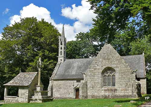 Édifice de la fin du 15ème siècle construit en granit et couvert d'ardoises. Elle se compose d'une nef, d'un transept et d'une abside rectangulaire. La façade ouest est surmontée d'un clocheton. Cette façade est percée d'une porte avec anse de panier et accolade. Les grandes fenêtres à meneaux sont de forme ogivale. Les rampants des pignons sont ornés de crochets et d'amortissements sculptés représentant des animaux. Du côté nord, une figure de lutteur pourrait représenter Saint-Cado. Au nord de la nef se trouve la sacristie du 16ème siècle percée d'une fenêtre Renaissance. Près de la chapelle se trouve un petit oratoire du 16ème siècle. Sur les trois faces ouvertes, un mur bahut forme clôture. Un calvaire est adossé à l'oratoire, au-dessus de trois gradins. Le Christ et cinq anges subsistent. Au bas du placître est construite une fontaine du 15ème siècle, abritée sous une arcade en anse de panier.