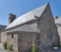 Chapelle de style gothique flamboyant très sobre, édifiée au XVe siècle sur un rocher au centre du village de Kervalet.