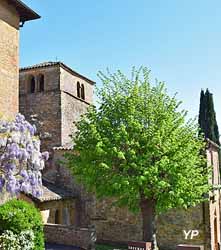 Chapelle Saint-Paul ou Notre-Dame du Sou à Lacenas dans le Rhône. La chapelle se trouve dans le petit hameau de Saint-Paul qui domine le château du Sou et la vallée du Morgon. Construite fin XIe siècle en pierres dorées, c'est un bon exemple du premier art roman. Elle se compose d'une nef à vaisseau unique, d'un choeur qui supporte le clocher barlong et d'une abside en hémicycle, couverte de lauzes. A la fin du XIIIe siècle la partie haute du clocher aurait été restaurée avec l'ajout des modillons angulaires, ornés de têtes simples ou bifaces, et de baies géminées. La façade ouest est ornée de deux grandes arcatures aveugles et d'un portail gothique ajouté au XVe siècle couvert d'un arc en accolade à moulures croisées. La paroi intérieure du choeur et de l'abside était entièrement recouverte de peintures murales gothiques du XIIIe ou du début du XIVe siècle qui constituent l'ensemble le plus important du Beaujolais. Elles ont été peintes à tempera