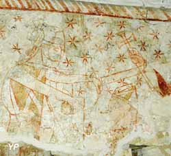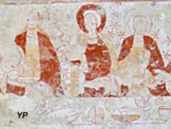 Des peintures datant du milieu du XIIIe siècle sont visibles actuellement sur environ 80 m2. Elles recouvraient à l'origine tout l'intérieur du monument. . Les peintures du choeur montrant un cycle de la passion et un cycle marial sont assez bien conservées. Dans la nef, elles sont plus abimées; on y voit en particulier l'attaque d'un château-fort, peut-être inspirée de récits de croisade et probablement le meurtre de Saint Thomas Becket en sa cathédrale de Canterbury.
