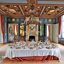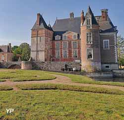 Campé au bord d'un étang, ce château en briques losangées du XVIIe siècle abrite une collection d'oeuvres d'art sur la pêche en eau douce, fondue dans le mobilier familial. Le château est prolongé par de vastes greniers à grain du XVIIe siècle. On y accède par deux anciens ponts-levis.