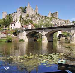 Après y avoir effectué d'importants travaux au XVe s., notamment la transformation du donjon en corps de logis, les évêques délaissent peu à peu le château qu'ils abandonnent définitivement en 1702. En ruine, il devient carrière publique à la Révolution. Le château présente aujourd'hui d'importants vestiges du XIe au XVe s., dont ceux du donjon roman à contreforts hémicylindriques, qui se dressent sur un éperon rocheux dominant de 40m le cours de l'Anglin.