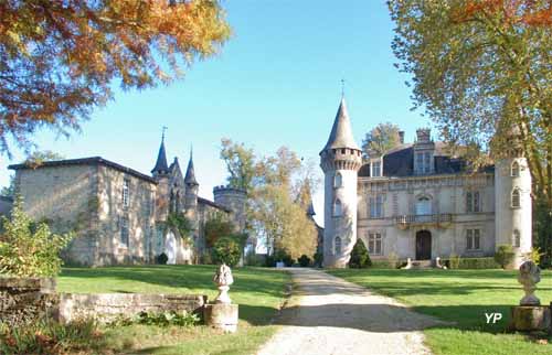 Château, parc et communs sont inscrits aux Monuments Historiques et l'ensemble est un concentré de charme et de romantisme. Le château a été construit en 1607 et remanié au XIXe s. en style Néo-Renaissance. Plusieurs éléments d'architecture pittoresques sont à remarquer: le chai du XVIIe siècle, le miroir d'eau ou le colombier du XVIIIe siècle. Mais la collection d'arbres rares comme les zelkovas pluricentenaires du Caucase avec leurs troncs semblables à des orgues est unique dans la région. Le plus gigantesque, baptisé Gulliver, a été labellisé Arbre Remarquable de France.