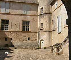 Le corps de bâtiment du XIVe s., flanqué de tours rondes, forme, avec les ailes du XVIIe s., un vaste quadrilatère agencé autour d'une cour intérieure, au coeur du domaine qui a gardé, depuis les prémices, sa vocation agricole.