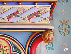 ![]() Copie de chambre rose de Viollet le Duc (doc. château de Roquetaillade) | ![]() Détail chapelle mauresque (doc. château de Roquetaillade) |