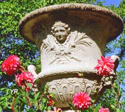 Jardin à la française, pièces d'eau, statues, animaux d'ornements en liberté.