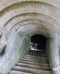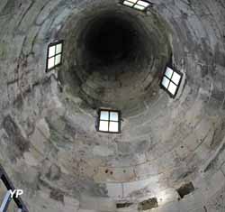 Entrée libre avec un tronc au rez-de-chaussée du donjon.