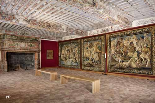 Le premier seigneur du château, Rigaud d'Aureille, sert successivement les rois Louis XI, Charles VIII, Louis XII et François 1er. Il participe à la première campagne d'Italie de 1494 puis est ambassadeur auprès de plusieurs cours d'Europe. Son château est orné de peintures murales qui relatent sa vie et témoignent de la vivacité de l'imaginaire médiéval. Avec ses successeurs, les murs s'enrichissent d'exceptionnels décors Renaissance peuplés de personnages mythologiques.