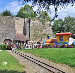 À l'extérieur, un train pour faire le tour du site ; un autre train à l'échelle G à découvrir ; des fours à chaux en visite libre et une immense aire de jeux pour enfants. Espace bar. Snacking salé/sucré aux heures d'ouverture. Boutique de produits du terroir et bio.