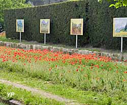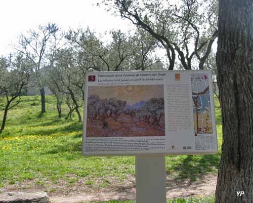 La visite du "Champ van Gogh" permet d'admirer plus de 20 reproductions en grand format des tableaux les plus connus peints par van Gogh sur les lieux de leur création : "Les iris"2, "La nuit étoilée"2, "Champ de blé au cyprès"2, "Les premiers pas"2, "Champ de blé au faucheur"2, "La sieste"2, "Oliveraie", "Jardin de L'hospice St Paul"2, "Autoportrait", etc.