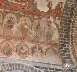 Également à l'intérieur, la fresque de la nef représentant les vingt-quatre vieillards de l'Apocalypse (XIIIe siècle), plusieurs statues polychromes et une chasse de saint Amand en émail limousin du XIIIe siècle.