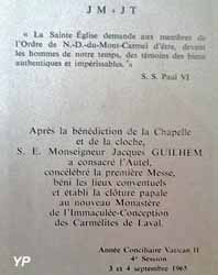 ![]() Couvent des Carmélites - image de consécration (doc. Carmel de Laval) |